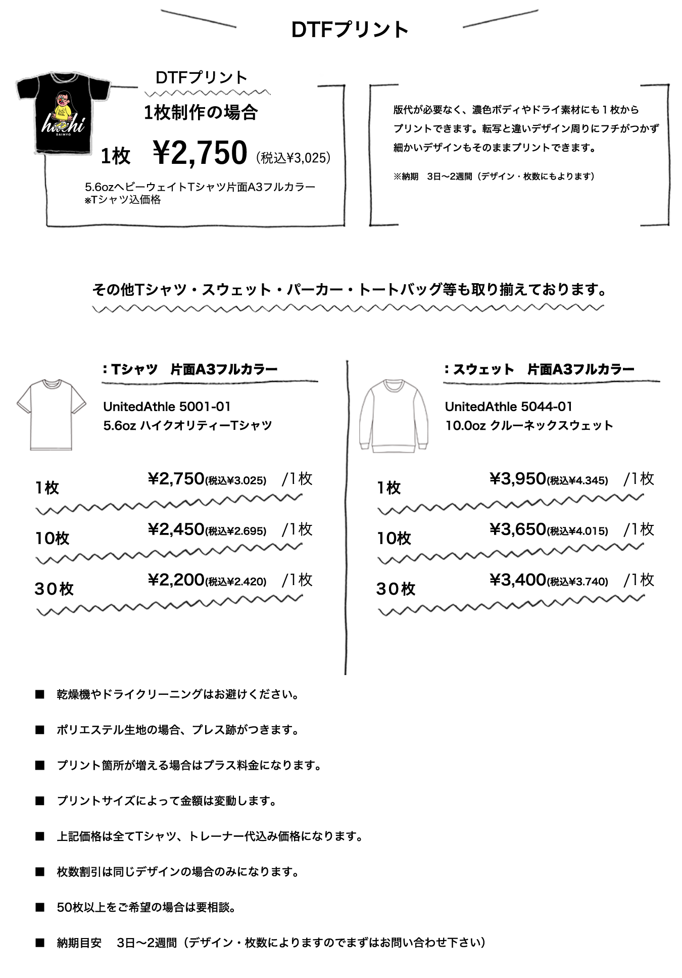 | 2024.3.1 | 【DTFプリントのお取扱いについて】 |